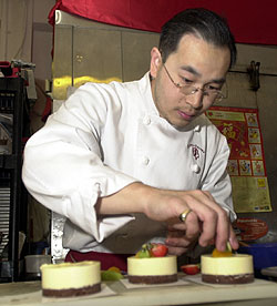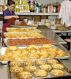 "I have a big cup," Luangkhot, 36, says. "Like more than 18 ounces." He will need it. Luangkhot works six days a week and often seven at his French Pastry bakery churning out 30 different kinds of baked goods over the course of each 14- to 16-hour day. From turnovers to wedding cakes, each of Luangkhot's creations represents another piece of baking art. His specialty is a combination of bitter chocolate mousse and chocolate cake that Luangkhot forms into "a chocolate pyramid" that sells for $4.50. Luangkhot sells 60 to 70 pyramids a day, along with hundreds of other pastries. He has two part-time workers, who mostly do prep work. So the bulk of the baking falls to Luangkhot. |