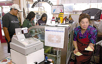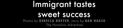 ![]() Praseuth "J.J." Luangkhot, above, prepares tasty treats at French Pastry in Kaimuki. ![]() Potongsunant sifts near a row of baked goods |